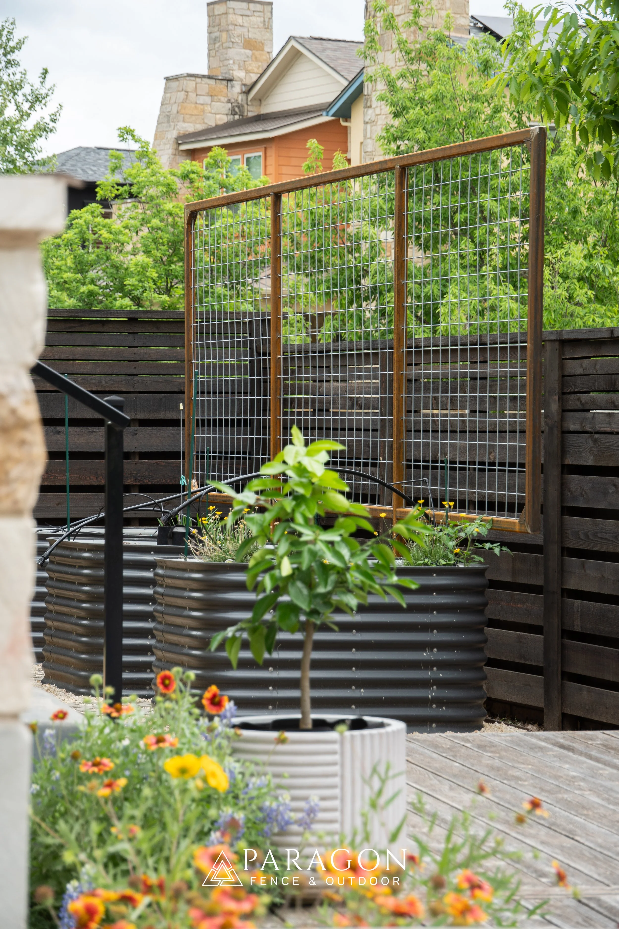 At Paragon Fence & Outdoor, we design and build custom raised garden beds, outdoor garden trellises, arbors, garden gates, and garden fencing for homeowners in Austin, Cedar Park, Leander, Round Rock, and surrounding Central Texas communities.