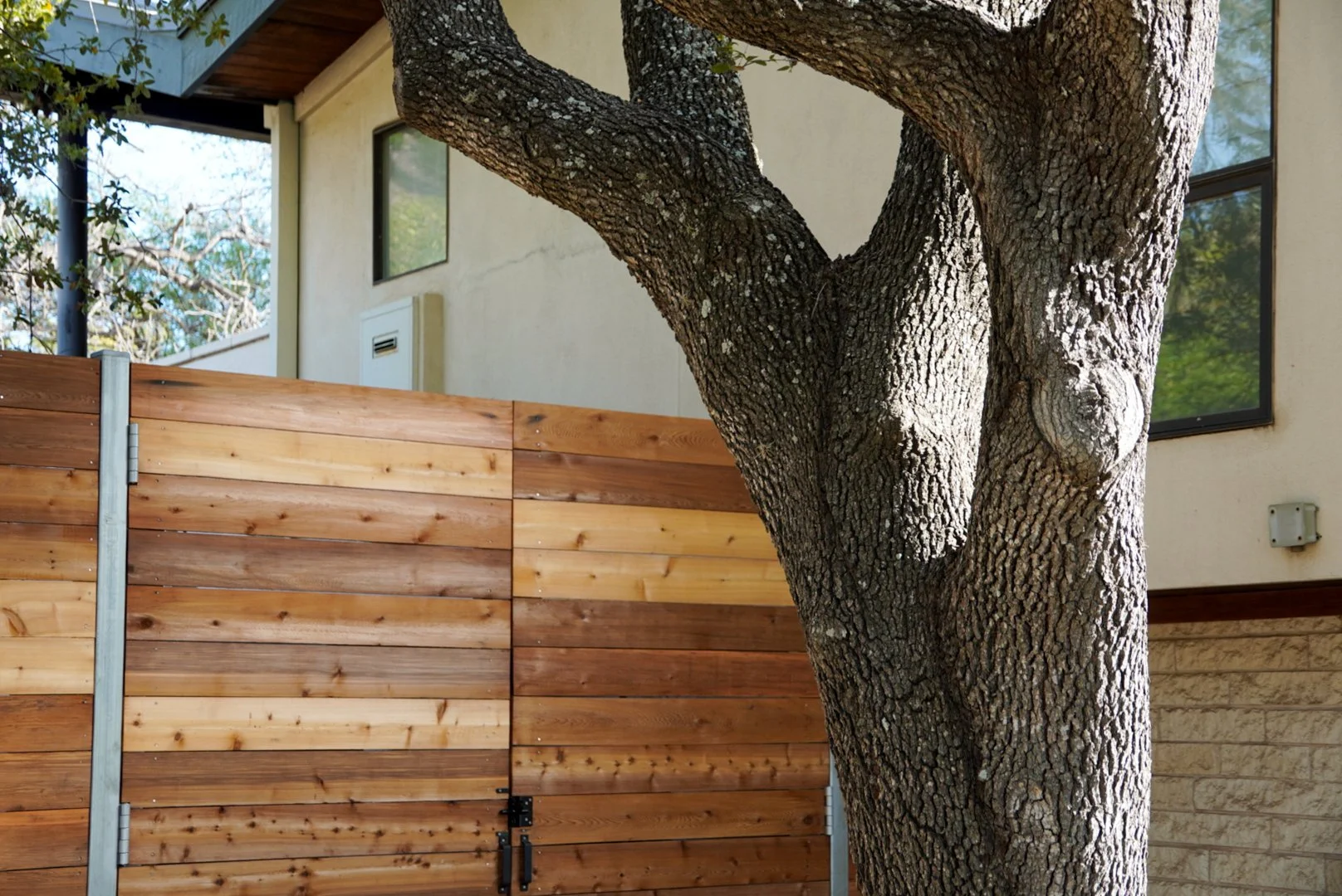 A horizontal wood fence is a popular choice in Austin, TX if you’re after that clean, modern look that still feels warm and inviting. Instead of upright boards, the pickets run longways, creating smooth, linear lines that pair well with contemporary homes and updated outdoor spaces. You can keep the boards tight for full privacy or open the spacing a bit for a lighter, more architectural feel.