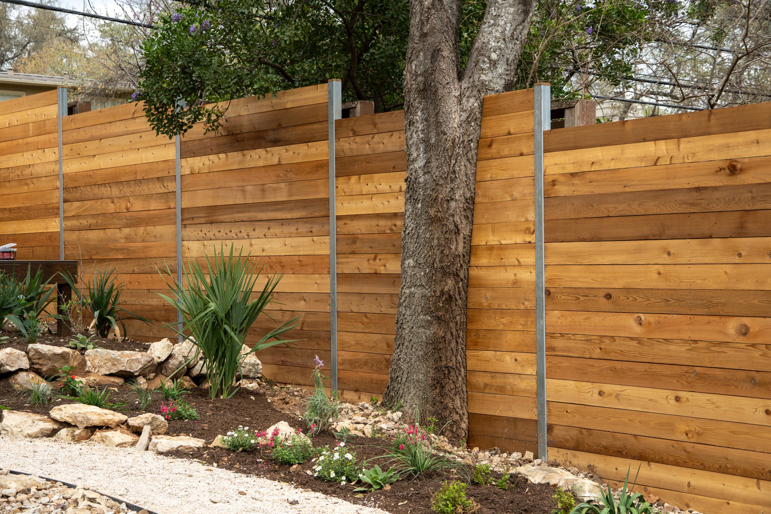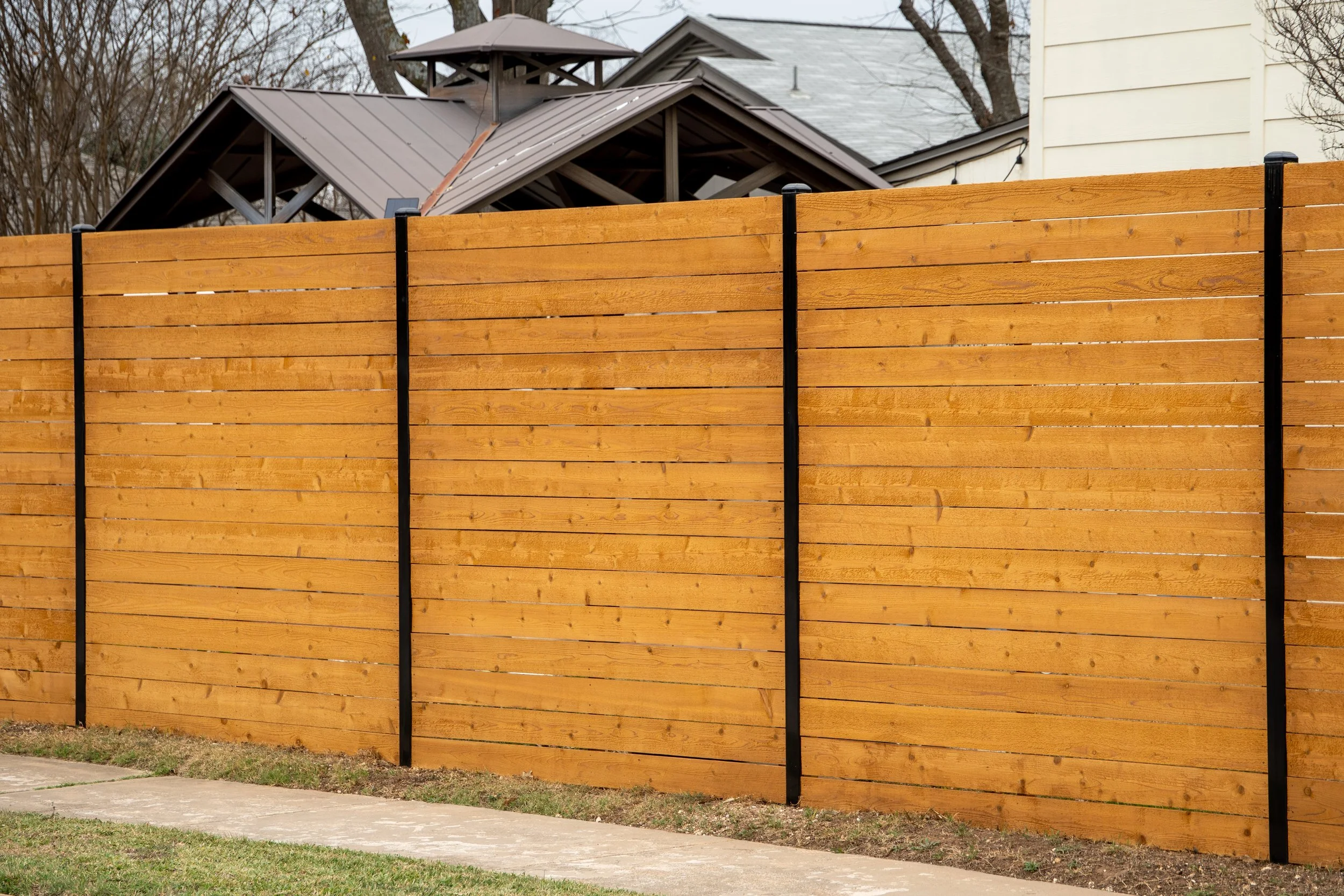 A horizontal privacy fence delivers a clean, modern look with full coverage and long, smooth lines.