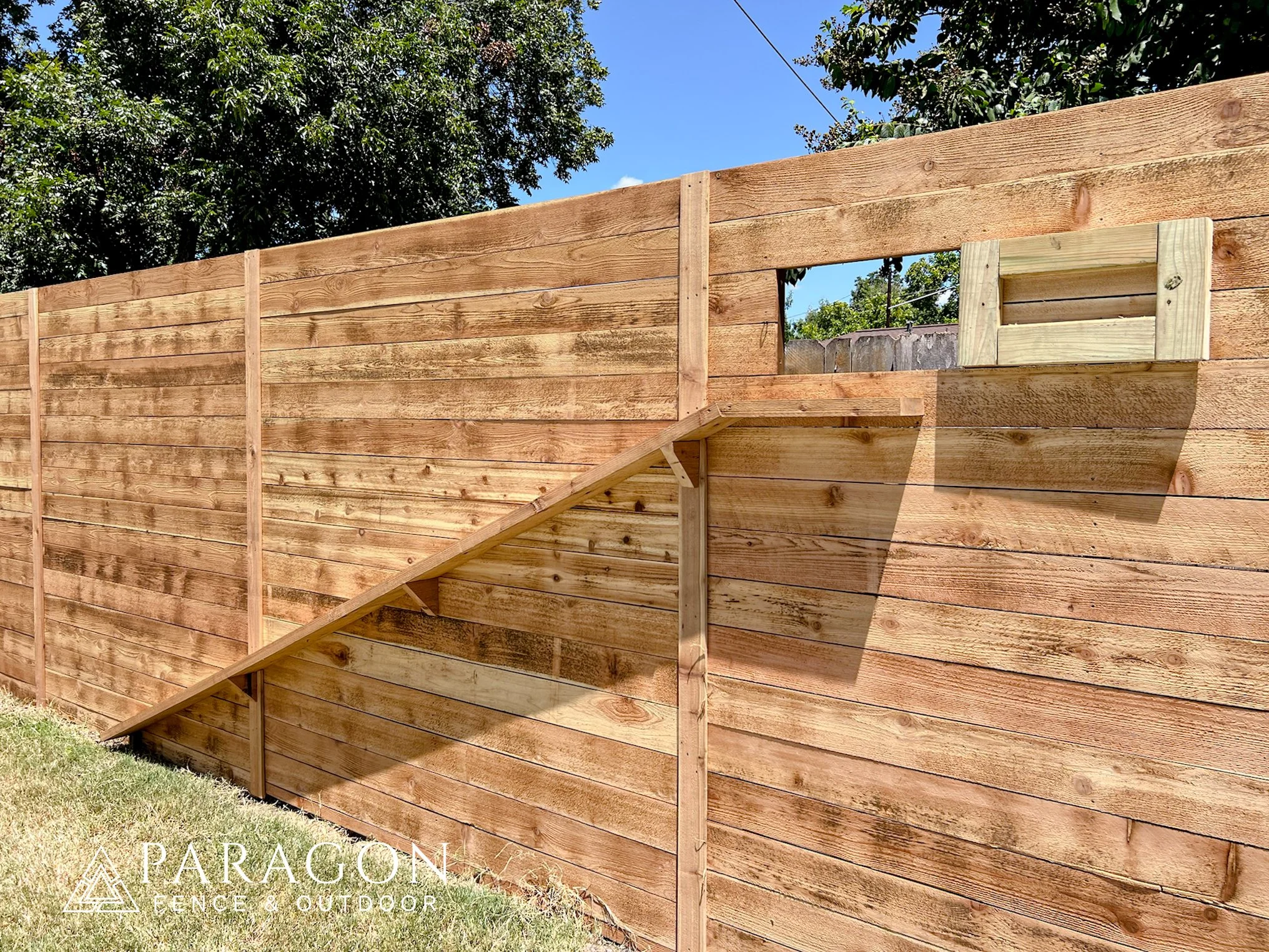 When we install your fence, we can design custom fence windows for dogs that allow visibility without compromising security or durability. These windows can be integrated into wood fences using reinforced framing, metal bull panel inserts, and placement tailored to dog size and behavior.