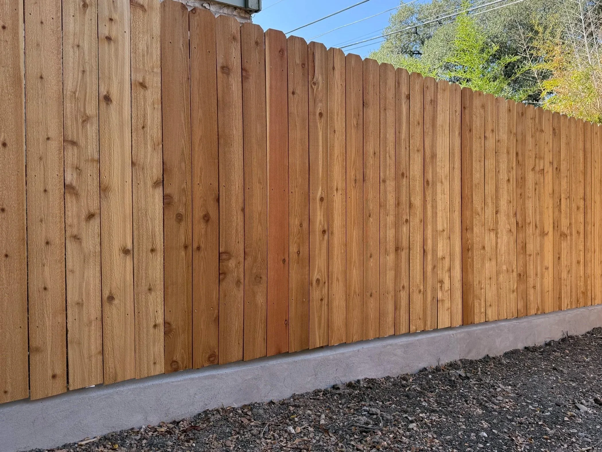 If your fence line runs along a slope or there’s soil pushing against an existing fence, installing a retaining wall first can create a stable base for the new fence. In some cases, the retaining wall supports the grade change and the fence is installed directly behind it. In other situations, the wall allows us to level out sections of the yard so the fence layout works properly.