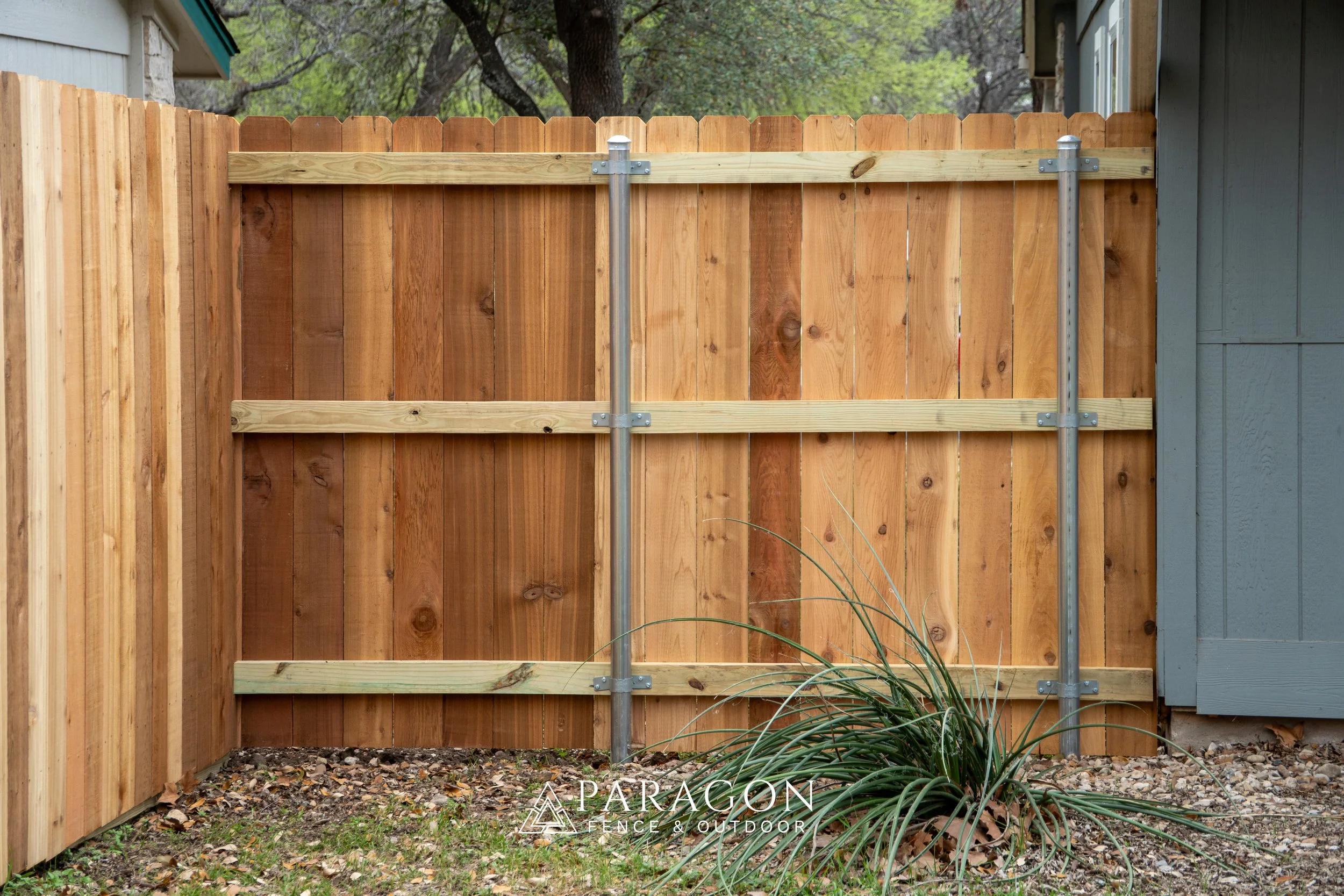 Premium: Thicker, 3/4”×6” Western Red Cedar pickets, steel posts, and top-of-the-line hardware